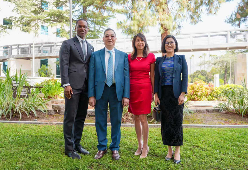 (右起)黃春華基金會執行長 Lina Tullberg、南加州大亞凱迪亞醫院基金會主席 Sandra Chen Lau、黃春華基金會創始人兼主席黃春華博士、南加州大亞凱迪亞醫院院長兼執行長 Ikenna Mmeje
