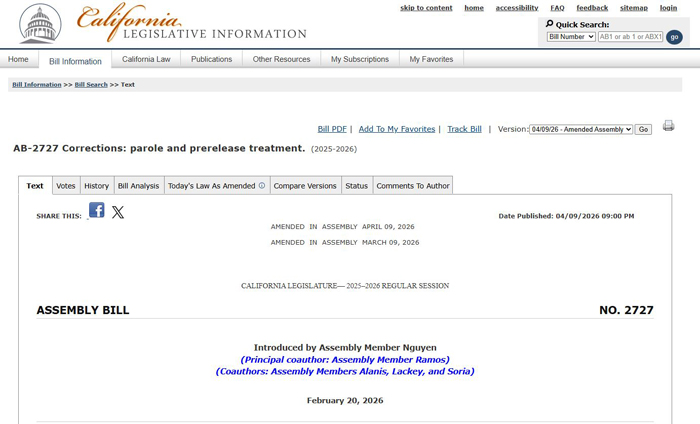 加州第 2727 号法案(AB 2727)(加州议会图片)