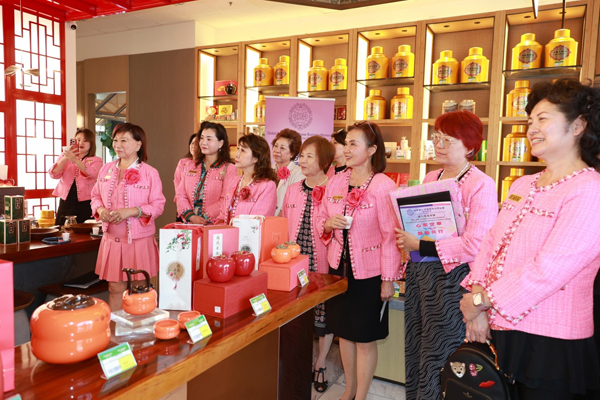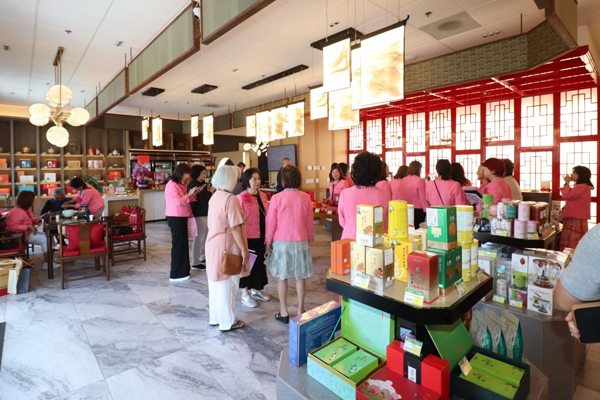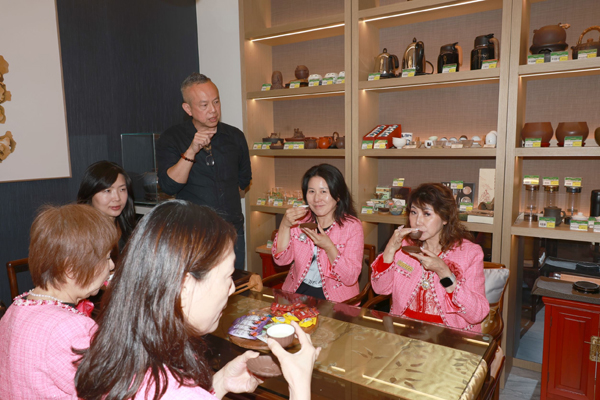當日下午,參訪現場茶香氤氳、氣氛溫潤而熱絡。來世華南加分會的姐妹們齊聚一堂,在優雅的茶文化氛圍中展開一場兼具知性與感性的交流之旅。從入口迎賓到品牌展示空間,每一處細節都展現出天仁茗茶對品質與文化的堅持,讓與會者彷彿置身於一場穿越時空的東方茶藝饗宴。