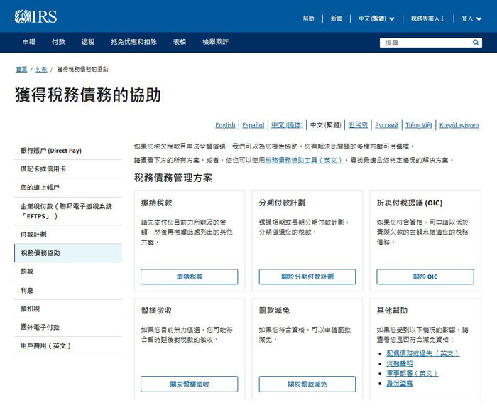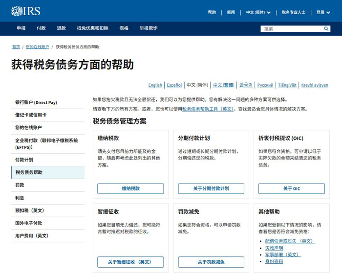 關鍵詞: 国税局,IRS,税务债务协助,在线工具