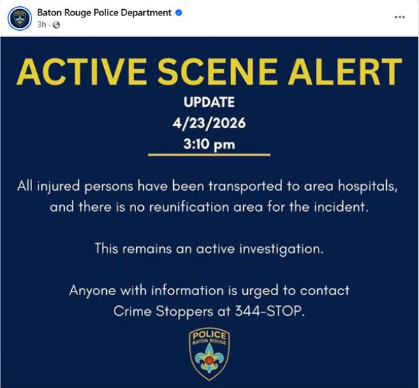 相关公告(巴吞鲁日警察局 BRPD)社交媒体图片