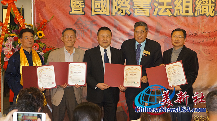 【美新社記者劉驍宗聖蓋博市報導】2017年4月16日星期日,南加州知名媒體人、文化人魯安和江南才子孫曉華書法作品學術展開展、同時書法國際組織宣告成立,並於洛杉磯藝站隆重舉行新聞發布會。洛杉磯主要華文媒體悉數參加,逾百嘉賓到場祝賀見證歷史。