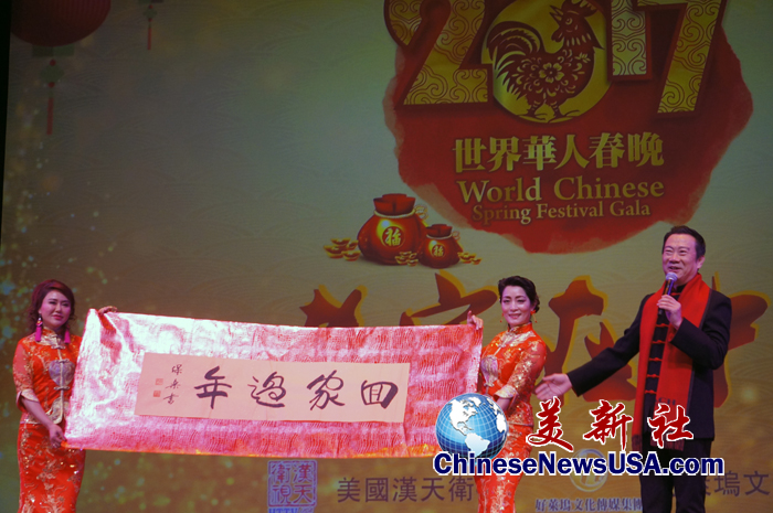【美新社記者劉驍宗聖蓋博報導】2017年1月14日晚間,聖蓋博大劇院再次座無虛席。由美國漢天衛視,好萊塢文化傳媒集團,僑聯通全球華人文化,與華文電視,共同主辦的2017世界華人春節晚會在此隆重登場。